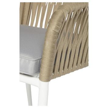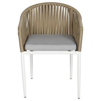 Stoel Noah taupe is een comfortabele stoel met een modern sfeervolle uitstraling. Door de combinatie van verschillende materialen past deze stoel goed bij meerdere tuinstijlen. De stoel kun je ook als eettafelstoel gebruiken.