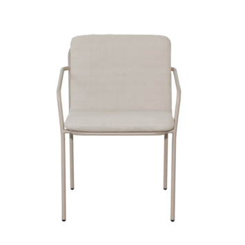 De Sol tuinstoel met beige frame en kussen geeft direct een comfortabele zitplek.
