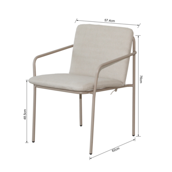 De stoel heeft een zithoogte van 48 cm, zitdiepte van 48,5 cm en zitbreedte van 50 cm. De armleuningen zijn 61 cm hoog. Het stevige frame en het zachte kussen zorgen voor comfort en stabiliteit.