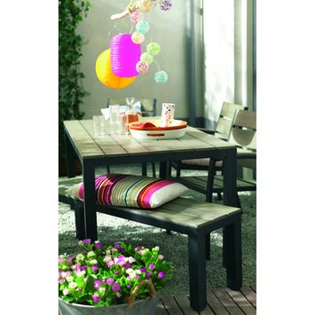 De Andorra tafel is een mooie tuintafel. Deze tuintafel heeft een aluminium frame en een houtcompositie blad hierdoor heeft de tafel een moderne look. Doordat het blad is gemaakt van houtcomposiet heeft het niet de nadelen van echt hout, oftewel geen haar en krimpscheuren. Deze Andorra tafel is goed te combineren met andere items uit de Andorra serie. De tafel is geschikt voor 4 stoelen of fauteuils, dineren aan deze tafel is dan ook geen probleem. Kortom de Andorra tafel verfraait iedere tuin.