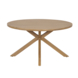 Het tafelblad is gebeitst om het hout te beschermen en de lichte teak look te behouden. Het ronde ontwerp maakt contact tussen iedereen aan tafel makkelijk en gezellig.