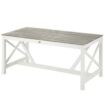 De tuintafel Texel is een stevige diningtafel. De tafel heeft wit gelakt onderstel met grijs geolied tafelblad. Dit geeft de tafel een mooie sfeervolle look. De tafel is geschikt voor 4 stoelen of fauteuils, dineren aan deze tafel is dan ook geen probleem. De Texel tafel komt uit de Texel serie. Hij is dan ook goed te combineren met o.a. de fauteuil, bankje of kruk uit de Texel serie. Maar kan ook heel goed gecombineerd worden met wicker fauteuils. Kortom de Texel tafel verfraait iedere tuin.