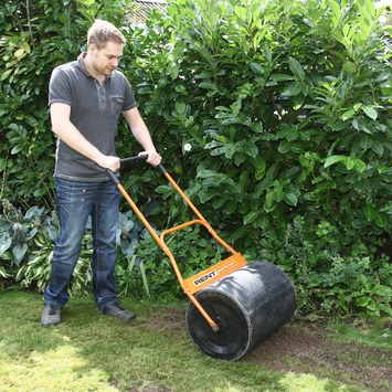 Met de tuinwals is het eenvoudig om de grond aan te rollen. De handbediende tuinwals dient gevuld te worden met water voor gebruik ervan.