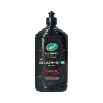 Turtle Wax Hybrid Solutions Pro to the Max Wax is een gemakkelijk aan te brengen en uit te poetsen vloeibare wax gevoed met graphene, waardoor een sterk web van bescherming wordt gecreëerd. Dit zorgt voor verbazingwekkende kleurdiepte, glans, chemische bestendigheid, waterafstotendheid samen met verhoogde UV-bescherming en gladheid die helpt water en vuil af te stoten. Hybrid Solutions Pro to the Max Wax kan gebruikt worden op velgen en glas.