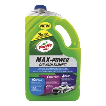 Turtle wax max-power autoshampoo 3L is de sterkste en veelzijdigste autoshampoo op de markt. De Turtle wax is aan te passen voor elke soort schoonmaak klus, afhankelijk van het soort vuil. Zo heb je 3 soorten toepassingen. Moderate, Aggressive en Xtreme. Oploppend van normaal vuil tot zeer vuil. De shampoo kan als enige de schoonmaakkracht opvoeren voor de beste resultaten. Zo verbetert de shampoo de PH-waarde, naarmate je het product meer gebruikt. De shampoo tast de auto niet aan en is veilig te gebruiken. Het laat geen krassen achter, droogt zonder vlekken en geeft een optimale glans aan de auto. Voor een optimale reiniging van je auto hanteer je de Turtle wax max-power autoshampoo 3L.