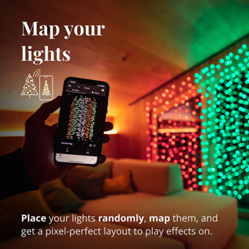 Creëer een geweldig kerstgevoel met dit prachtige lichtgordijn. Dit slimme kerstverlichting gordijn kan worden aangestuurd middels de Twinkly app. In de app zijn diverse functies beschikbaar. Zo kunt u de lichtkleur instellen, effecten instellen, het licht aan- en uitzetten en dimmen. Daarnaast kunt u de verlichting ook aansturen met uw stem met Google Home of Amazon Alexa. Dit lichtgordijn heeft een afmeting van 1,5 x 2,1 meter. U kunt het lichtgordijn over een heg plaatsen of voor een muur of raam plaatsen. Met de gordijn steelt u gegarandeerd de show tijdens de feestdagen.
