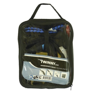 De Twinny Load spanbandenset 9-delig is een complete set waarmee je de lading op bijvoorbeeld een aanhanger veilig kunt vastzetten. Deze set bestaat uit 9 verschillende spanbanden die je kunt gebruiken voor het vastzetten van diverse soorten ladingen, zoals dozen, kratten of witgoed. De set bestaat uit: 2 spanbanden met ratel van 3 meter lengte, 2 sjorbanden van 2,5 meter lengte, 2 bagagebinders van 30 cm en 2 bagagebinders van 60 cm lengte. Daarnaast zit in deze set een markeringsvlag voor het markeren van lange ladingen. Kortom, de Twinny Load spanbandenset 9-delig is multifunctioneel en geschikt voor versteviging van nagenoeg elke lading.