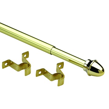 De uitschuifbare caferod goud 50-75 cm is een stijlvol gordijnsysteem om lichte gordijnen aan op te hangen. De roede is uitschuifbaar tussen de 50 en 75 cm en kan dus makkelijk op maat worden gemaakt binnen deze breedte. De set wordt compleet geleverd en bestaat uit een roede, montagesteunen, ringen om je gordijn aan op te hangen en eindknopjes.