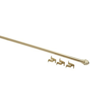 De uitschuifbare caferod goud 75-125 cm is een stijlvol gordijnsysteem om lichte gordijnen aan op te hangen. De roede is uitschuifbaar tussen de 75 en 125 cm en kan dus makkelijk op maat worden gemaakt binnen deze breedte. De set wordt compleet geleverd en bestaat uit een roede, montagesteunen, ringen om je gordijn aan op te hangen en eindknopjes.