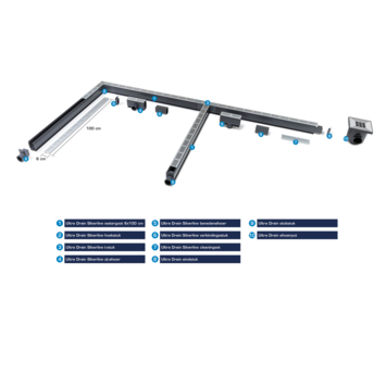 Ultradrain afvoerput 20,2x20,2 cm met zilver afdekrooster