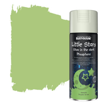 Met Rustoleum Little Wonders Glow In The Dark verf Spray 400ml Maanstof tover je muren, plafonds en andere objecten om tot een echte sterrenhemel. Deze verf zal bij blootstelling aan licht als het ware "opladen" en in het donker oplichten. Ideaal voor een extra touch aan kinder- of Speelkamers.