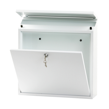 Deze witte V-part Malagan wandbrievenbus is voorzien van een cilinderslot. De inworpopening aan de bovenkant zit onder de klep, zodat de post beschermd is. De inworpopening heeft een breedte van 35,8 cm en een hoogte van 4 cm.