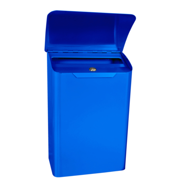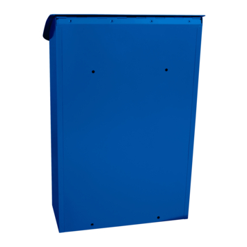 De V-part Wandbrievenbus Lugon is van gepoedercoat gegalvaniseerd staal in de opvallende kleur blauw. Is Voorzien van cilinderslot met 2 sleutels aan de bovenzijde onder de klep. Ook de inworpopening met een afmeting van 25 x 4 cm, bevindt zich aan de bovenzijde onder de klep.