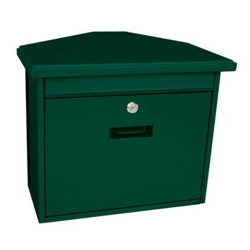 Deze handige V-part Zamoran wandbrievenbus in de kleur groen is van gepoedercoat gegalvaniseerd staal is voorzien van cilinderslot en naamplaathouder. De inworpopening bevindt zich achter de klep aan de voorzijde en heeft een inworpopening van 32x2cm. Ook is deze brievenbus voorzien van een handige krantenvak aan de achterzijde van de brievenbus.