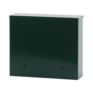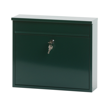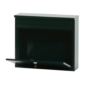 Stalen wandbrievenbus met klep en opening voorzien van cilinderslot aan de voorzijde. Inworpopening: 32 x 4 cm.
