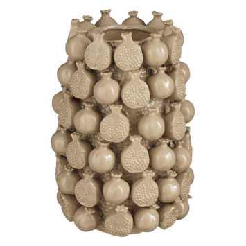 Met deze beige vaas voeg je niet alleen een speels, kleurrijk item toe in je interieur, maar je bent ook on trend. Fruitvazen zijn namelijk helemaal in. De bloemenvaas, gemaakt van keramiek, is versierd met vijgen. Plaats er een groot boeket bloemen in en zet hem op het midden van je eettafel of op je dressior. Zo maak je het een echte eyecatcher. De afmetingen zijn H30 xø24 cm.