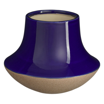 - Ruwe klei-textuur aan de onderkant, glanzend donkerblauw glazuur bovenaan