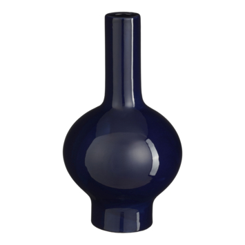 - Blauwe vaas met bolvorm en smalle hals
