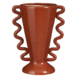 Deze vaas maakt direct indruk met zijn speelse, golvende handgrepen en klassieke voet. De diepe bruine kleur en glanzende afwerking geven hem een warme, krachtige uitstraling. Perfect als statement piece in een open kast, op een dressoir of midden op tafel. Ook zonder bloemen is het een opvallend decoratief object. De afmetingen zijn L31 x B20,5 x H39 cm.