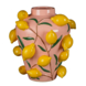 Van deze vaas word je echt blij! Deze vrolijke vaas van keramiek is roze en versierd met levendige, groene bladeren en opvallende, gele citroenen die eruit springen! De vaas met fruit is handgemaakt en daardoor uniek. Zorg voor een frisse, kleurrijke sfeer in je interieur met deze vaas als blikvanger. Plaats deze op een dressoir of op een plantenstandaard met een volle bos bloemen. Zo Creëer je een pronkstuk! De vaas heeft een hoogte van 37,5 cm en een diameter van 35 cm. De opening van de vaas heeft een diameter van 10 cm. | Let op: omdat dit een handgemaakt product is, kan de kleur, maat of vorm bij ieder item iets afwijken. Daarnaast zijn keramieken vazen poreus en nooit 100% waterdicht.