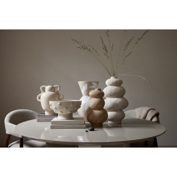 Deze crèmekleurige vaas brengt een zachte, sculpturale touch in je interieur. Het speelse, spiraalvormige design maakt van elke plek een stijlvol statement. Door de neutrale kleur past hij moeiteloos bij zowel lichte als warme tinten. De afmetingen zijn L26 x B17,5 x H44 cm.