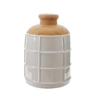 Vaas dolomiet/hout Ø14x22 cm is een vaas met een uniek design. Het gebruik van twee verschillende materialen en de structuur zorgen ervoor dat de vaas ook zonder bloemen een decoratieve toevoeging is. De vaas dolomiet/hout Ø14x22 cm heeft een hoogte van 22 centimeter en een diameter van 14 centimeter.