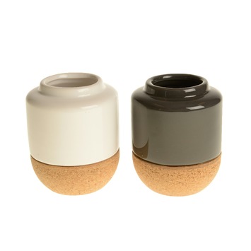 Vaas dolomiet/kurk Ø7x9 cm is een vaas met een bijzonder uiterlijk. De vaas kenmerkt zich door het gebruik van twee verschillende materialen, wat bijdraagt aan het moderne uiterlijk van de vaas. De vaas is verkrijgbaar in de kleur grijs of wit. De vaas dolomiet/kurk Ø7x9 cm heeft een hoogte van 9 centimeter en een diameter van 7 centimeter.