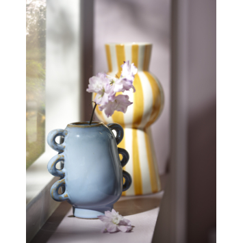 Leuke geel gestreepte vaas gemaakt van keramiek. De vaas is 21 cm hoog.