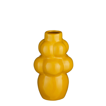 Deze vaas perfect voor een paar bloemen of droogbloemen. De vaas is gemaakt van stevig keramiek en heeft een vrolijke, gele kleur. De vaas valt op door de vormgeving en het mooie ronde reliëf. Leuk om zo neer te zetten op tafel of op je dressoir voor een sfeervol geheel. Zelfs zonder bloem is deze moderne vaas een echte eyecatcher! De vaas is 28 cm hoog en heeft een diameter van 16 cm. Let op: Omdat dit een handgemaakt product is, kan de kleur, maat of vorm bij ieder item iets afwijken. Daarnaast zijn keramieken vazen poreus en nooit 100% waterdicht.