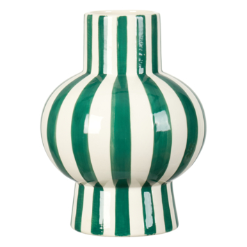 Leuke groen gestreepte vaas gemaakt van keramiek. De vaas beschikt over de volgende afmetingen; 15x15x20,5 cm.