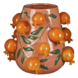 Van deze vaas word je echt blij! Deze vrolijke vaas van keramiek is roze en versierd met levendige, groene bladeren en opvallende, oranje granaatappeltjes die eruit springen! De vaas met fruit is handgemaakt en daardoor uniek. Zorg voor een frisse, kleurrijke sfeer in je interieur met deze vaas als blikvanger. Plaats deze op een dressoir of op een plantenstandaard met een volle bos bloemen. Zo Creëer je een pronkstuk! De vaas heeft een hoogte van 30,5 cm en een diameter van 34 cm. De opening van de vaas heeft een diameter van 15 cm. Let op: omdat dit een handgemaakt product is, kan de kleur, maat of vorm bij ieder item iets afwijken. Daarnaast zijn keramieken vazen poreus en nooit 100% waterdicht.