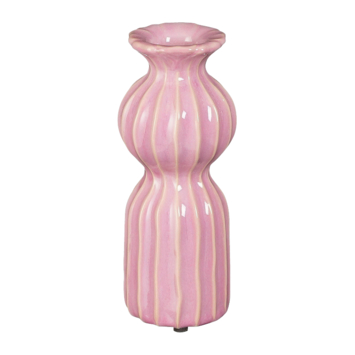 Deze vaas is perfect voor een paar bloemen of droogbloemen. De vaas is gemaakt van stevig keramiek en heeft een prachtige lila kleur. Daarnaast is de vaas uniek omdat deze 100% handgemaakt is. De vaas valt op door de vormgeving en het mooie reliëf. Leuk om zo neer te zetten op tafel of op je dressoir voor een sfeervol geheel. Zelfs zonder bloem is deze vaas een echte eyecatcher! De vaas is 20 cm hoog en heeft een diameter van 8 cm. Let op: Omdat dit een handgemaakt product is, kan de kleur, maat of vorm bij ieder item iets afwijken. Daarnaast zijn keramieken vazen poreus en nooit 100% waterdicht.