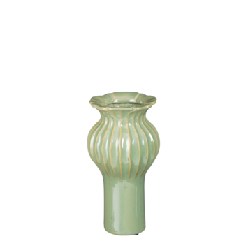 Deze vaas is perfect voor een paar bloemen of droogbloemen. De vaas is gemaakt van stevig keramiek en heeft een prachtige gele kleur. Daarnaast is de vaas uniek omdat deze 100% handgemaakt is. De vaas valt op door de vormgeving en het mooie reliëf. Leuk om zo neer te zetten op tafel of op je dressoir voor een sfeervol geheel. Zelfs zonder bloem is deze vaas een echte eyecatcher! De vaas is 30 cm hoog en heeft een diameter van 16 cm. Let op: Omdat dit een handgemaakt product is, kan de kleur, maat of vorm bij ieder item iets afwijken. Daarnaast zijn keramieken vazen poreus en nooit 100% waterdicht.