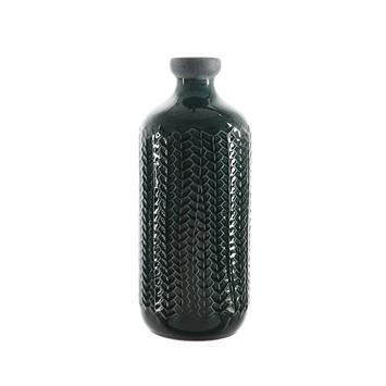 Vaas keramiek blad groen Ø16x38 cm is een vaas met een bijzonder reliëf. De combinatie van de donker groene kleur met de grijze rand aan de bovenkant zorgen ervoor dat de vaas ook zonder bloemen een decoratieve toevoeging is. Vaas keramiek blad groen Ø16x38 cm is 38 centimeter hoog en heeft een diameter van 16 centimeter.