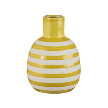 Deze prachtige geel gestreepte vaas is de perfecte aanvulling op elke kamer in huis. Met zijn prachtige kleur en gestreepte patroon zal deze vaas een onmiddelijke blikvanger zijn. Je kan de vaas gebruiken alleen ter decoratie of om mooie bloemen in te plaatsen. De vaas is gemaakt van keramiek en zo'n 17 cm hoog.