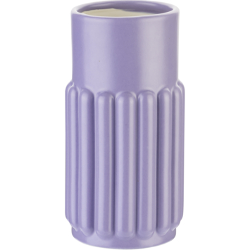 Fleur je huis op met deze leuke paarse vaas. Gemaakt van glanzend keramiek en hij beschikt over een geribbeld motief. Plaats de vaas in de woonkamer ter decoratie of zet er een aantal mooie bloemen in. De vaas is zo'n 18 cm hoog.