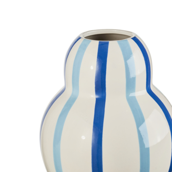 Deze prachtige blauw gestreepte vaas is de perfecte aanvulling op elke kamer in huis. Met zijn prachtige kleur en gestreepte patroon zal deze vaas een onmiddelijke blikvanger zijn. Je kan de vaas gebruiken alleen ter decoratie of om mooie bloemen in te plaatsen. De vaas is gemaakt van keramiek en zo'n 18,5 cm hoog.