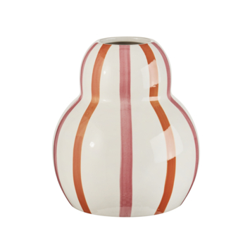 Deze prachtige oranje gestreepte vaas is de perfecte aanvulling op elke kamer in huis. Met zijn prachtige kleur en gestreepte patroon zal deze vaas een onmiddelijke blikvanger zijn. Je kan de vaas gebruiken alleen ter decoratie of om mooie bloemen in te plaatsen. De vaas is gemaakt van keramiek en zo'n 18,5 cm hoog.