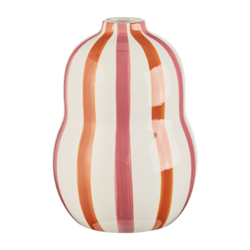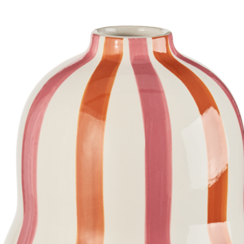 Deze prachtige oranje gestreepte vaas is de perfecte aanvulling op elke kamer in huis. Met zijn prachtige kleur en gestreepte patroon zal deze vaas een onmiddelijke blikvanger zijn. Je kan de vaas gebruiken alleen ter decoratie of om mooie bloemen in te plaatsen. De vaas is gemaakt van keramiek en zo'n 23,5 cm hoog.