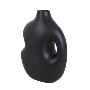 Deze mooie zwarte vaas met organische vorm past in elk interieur. Decoreer deze vaas als object of met een mooie bloem.