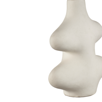Trendy vaas met geometrische vormen gemaakt van keramiek in een offwhite kleur. De vaas beschikt over een hoogte van zo'n 18 cm.
