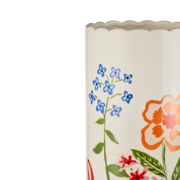 Fleur je huis op met deze prachtige vaas! De vaas beschikt over een leuke bloemenprint en de bovenkant van de vaas heeft een schulpvorm. Hij is gemaakt van keramiek en zo'n 25 cm hoog. Waar zet jij hem neer?