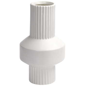 Rustige keramieke vaas geïnspireerd op de Griekse stijl met een natuurlijke vorm. De bottom en de top hebben een mooie ribbel. Luisterrijke, witte bloemenvaas voor in elke kamer van je huis.