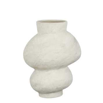 Deze lichtgrijze vaas combineert een moderne vorm met een natuurlijke uitstraling. De zachte afwerking en ronde lijnen zorgen voor een speels maar stijlvol silhouet. Ideaal als blikvanger op een kast, bijzettafel of in een open vakkenkast. Gebruik hem puur als object of met een paar losse takken. De afmetingen zijn L23 x B16 x H30 cm.