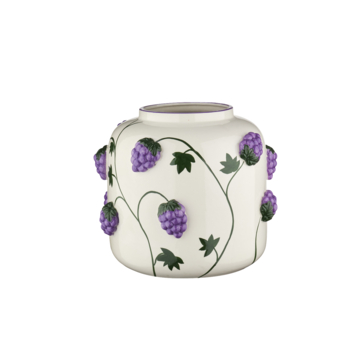 Perfect voor het presenteren van je favoriete bloemen of als een standalone kunstwerk, deze vaas maakt een stijlvolle indruk. Het druivenontwerp roept beelden op van een ontspannen, weelderige wijngaard en voegt een natuurlijk, organisch element toe aan je ruimte.