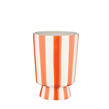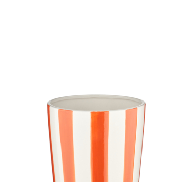 Of je nu op zoek bent naar een statement piece voor je woonkamer, een kleurrijke accent voor je eettafel, of een opvallend detail voor je vensterbank, deze vaas is de perfecte keuze. De oranje strepen geven een speelse en dynamische twist aan de vaas, waardoor hij zich moeiteloos aanpast aan zowel eigentijdse als klassieke interieurstijlen.