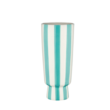 Voeg een speelse en verfijnde touch toe aan je interieur met onze vaas met blauwe strepen. Deze stijlvolle vaas is een perfect statement piece voor elke kamer en brengt een vleugje frisse kleur en elegantie in je huis. De subtiele blauwe strepen geven de vaas een moderne uitstraling, terwijl de tijdloze vorm zorgt voor een veelzijdige match met verschillende interieurstijlen.