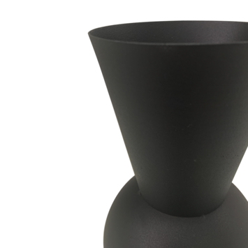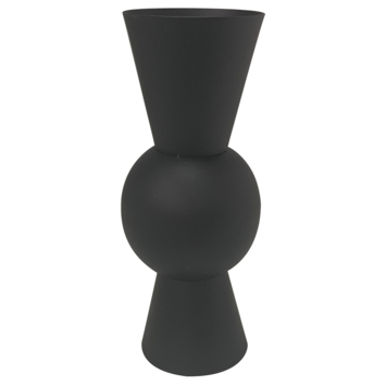 Deze strakke metalen vaas in de kleur zwart kun je overal bij combineren. De vaas is 28 cm hoog en heeft een diameter van 11 cm.