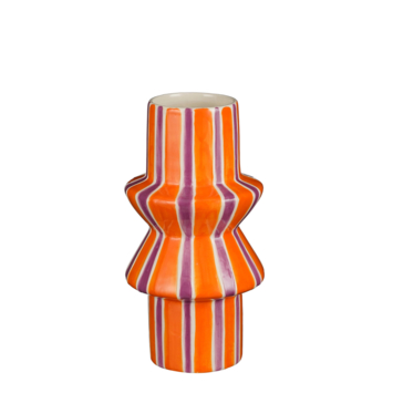 Hoe prachtig is deze vaas? Gemaakt van hoogwaardig porselein en in de kleuren oranje en paars die in verticale lijnen over de vaas lopen. Doordat de vaas een smalle opening heeft, is hij erg geschikt voor een paar bloemen - dat staat erg schattig in jouw interieur! De hoogte is 19,5 cm en de diameter is 10 cm. Weet jij al waar je hem gaat zetten?