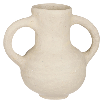 Vaas van papier-maché in een off white kleur. De afmetingen zijn L27 x B20 x H30 cm.Door het gebruik van papier-maché heeft deze vaas een unieke uitstraling. Dat is eens iets anders dan een strak design! De off white kleur is mooi neutraal, waardoor hij in elk interieur past. Zet de vaas zo neer, of vul hem met wat pluimen, kunstbloemen of siertakken. De afmetingen zijn L27 x B20 x H30 cm.